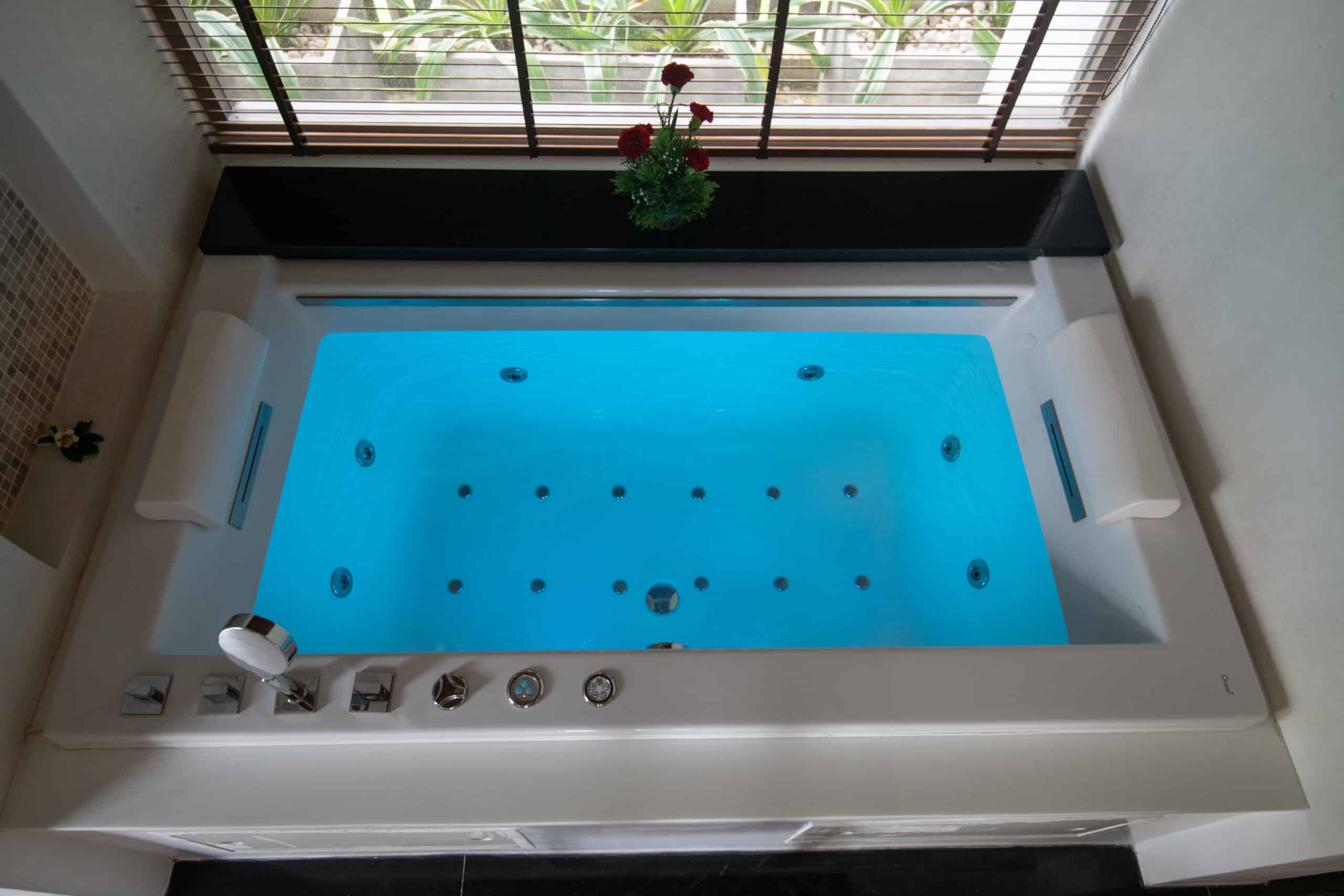 En plus de son design moderne, le spa à débordement a un avantage : il fait peu de bruit. La machinerie est généralement installée dans un local technique à part.